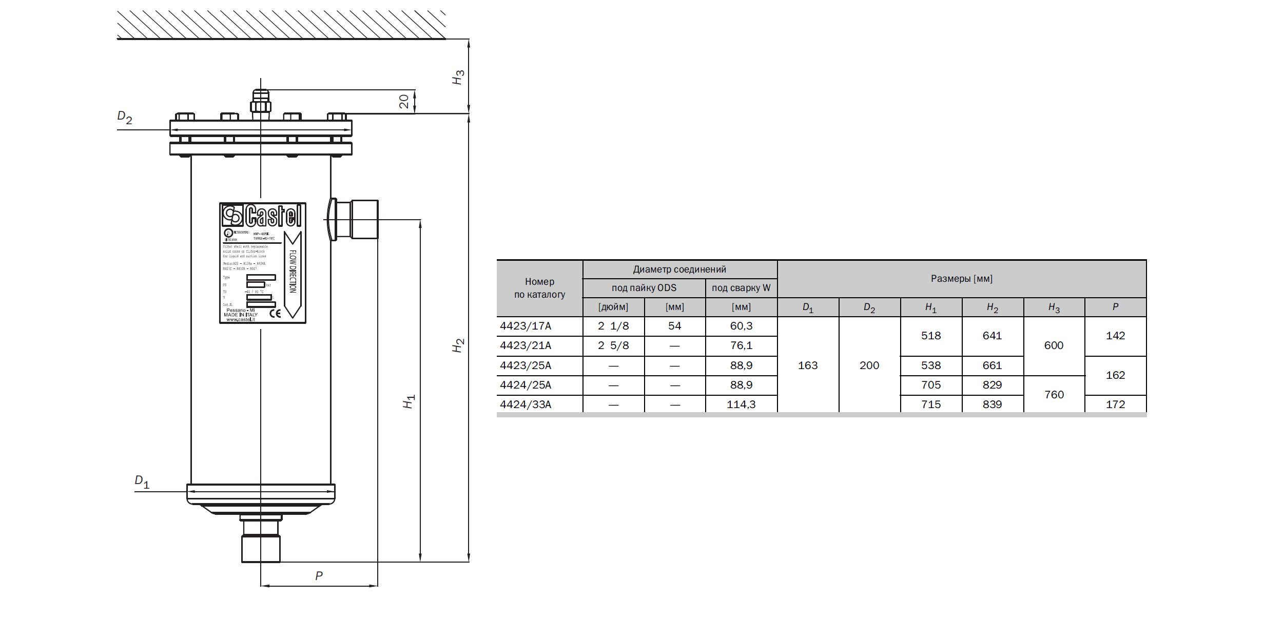 Схема-креслення фільтра-осушувача Castel 4423 / 21A: