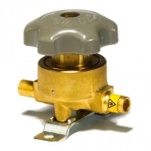 Корпус клапана, кришка і шпиндель виконані з латуні, маховик - з кольорової пластмаси. Боковий штуцер триходового клапана може бути закритий, але торцеві штуцери завжди залишаються відкритими.