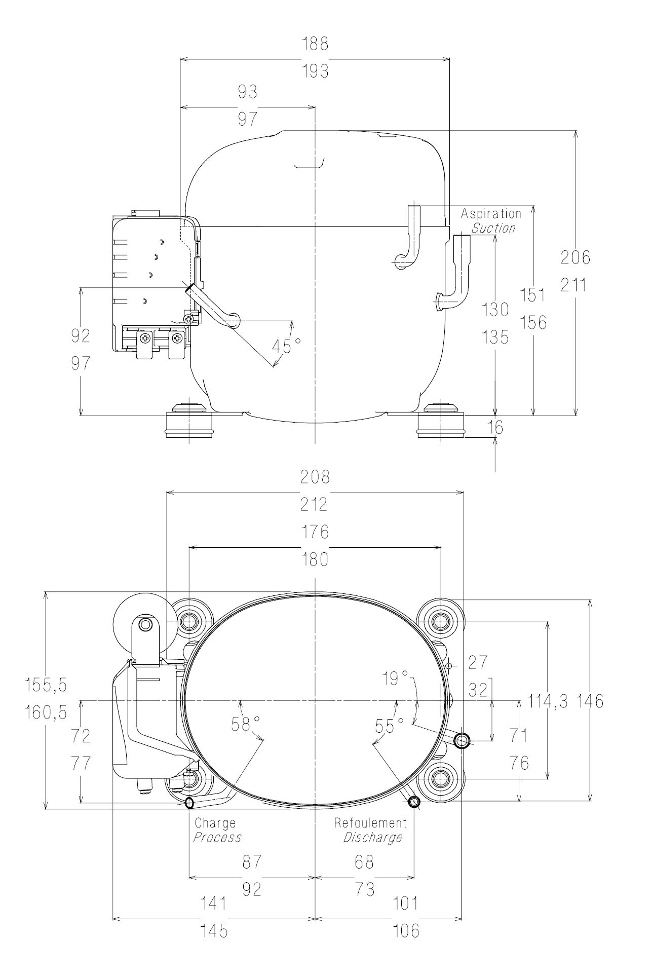 | Охолодження при t ° конд. + 54,5 ° С, t ° кіп.-15 ° С | 667 Вт |