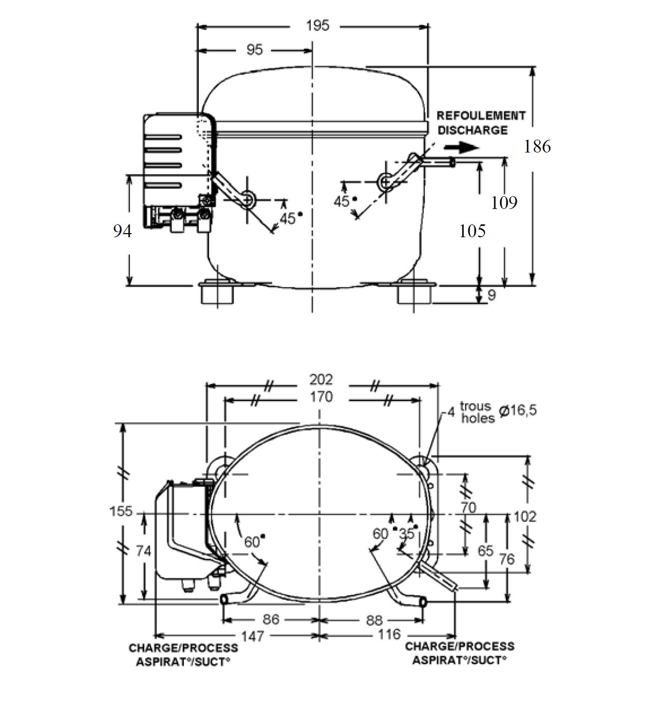 | Охолодження при t ° конд. + 54,5 ° С, t ° кіп.-20 ° С | 228 Вт |