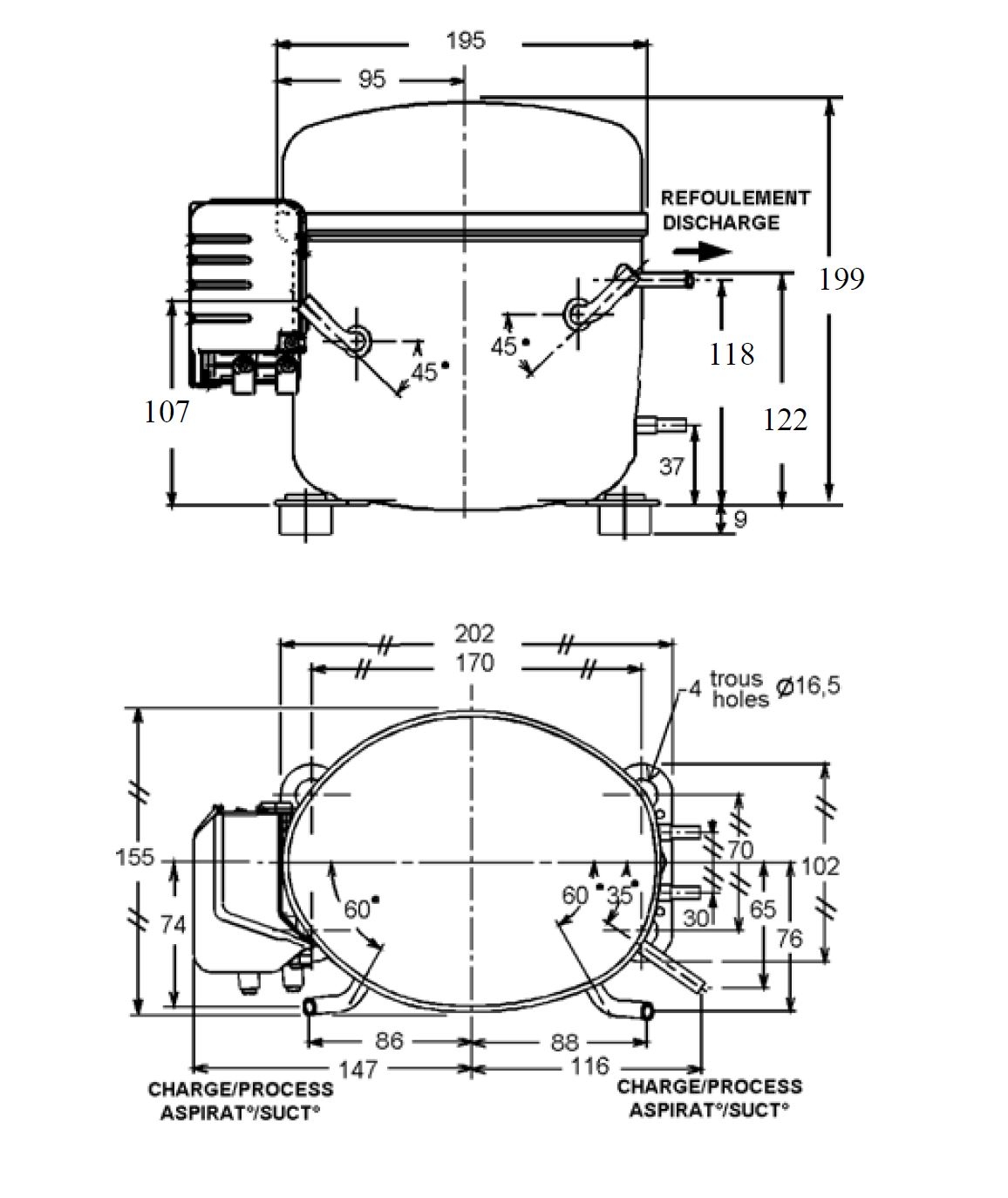 | Охолодження при t ° конд. + 54,5 ° С, t ° кіп.-23,3 ° С | 223 Вт |