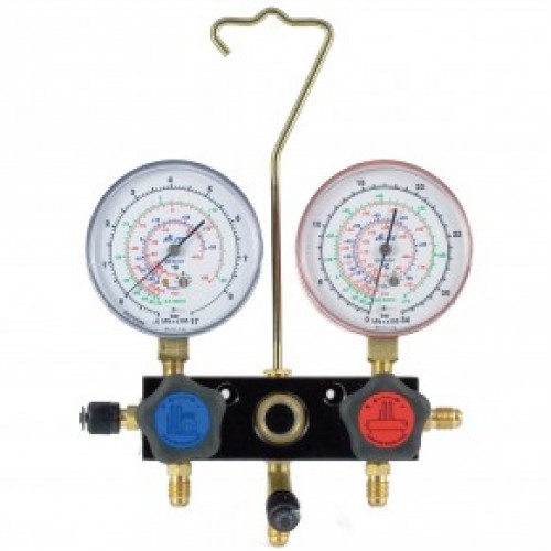 Снабжён 5 соединениями 1/4' MFL (SAE с наружной резьбой), два из которых с клапаном Шредера (центральный тройник + на левой стороне (низкого давления)). Это обеспечивает дополнительные присоединения, например, для вакуумметра, добавления масла и т.д.