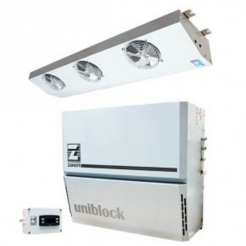 Сплит-система для холодильных камер малого и среднего объема. Компрессорно-конденсаторный агрегат устанавливается на стене, воздухоохладитель на потолке.