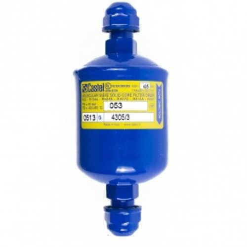 Фильтры-осушители Castel серии 43 разработаны для использования в холодильных установках, работающих на всех общепринятых хлорфторсодержащих хладагентах, смешанных с полиэфирными маслами.