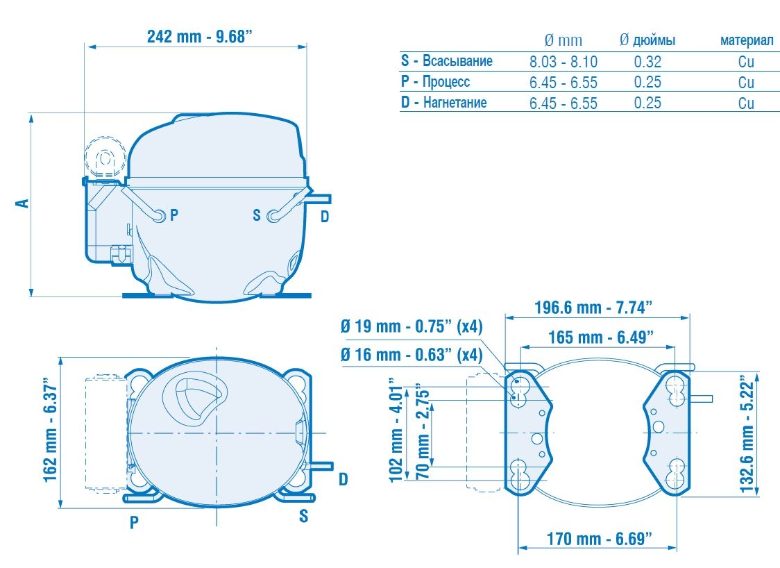 | Холодопроизводительность при t°конд.+45°С, t°кип.0°С | 1596 Вт |
