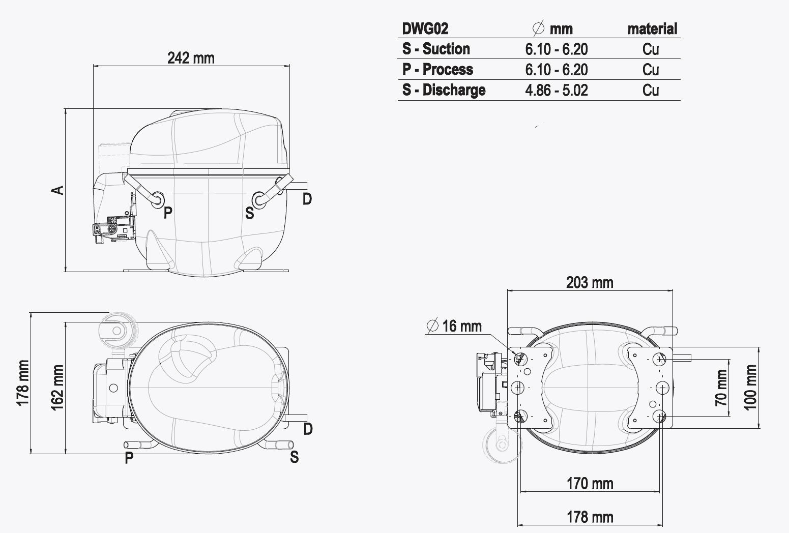 | Холодопроизводительность при t°конд.+55°С, t°кип.-15°С | 245 Вт |