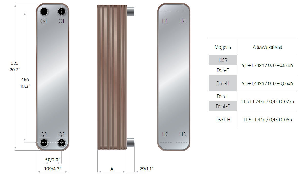 Схема-чертеж теплообменника Danfoss D55-H: