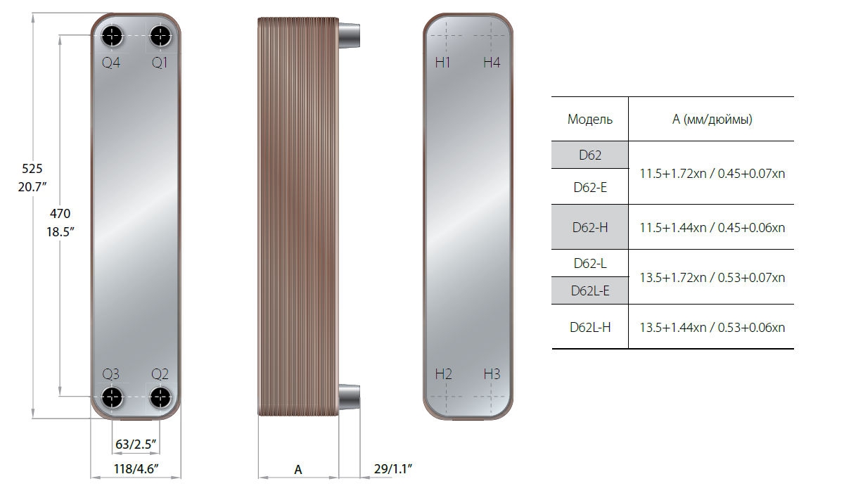 Схема-чертеж теплообменника Danfoss D62: