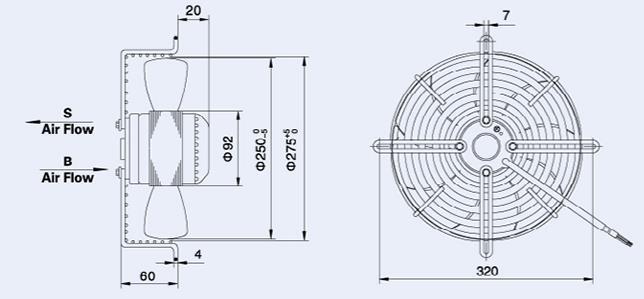 5. Направление воздуха: S - всасывание, B - нагнетание