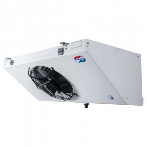 Плоская конструкция занимает очень мало места и позволяет оптимально использовать холодильную камеру. Расположенный под углом вентилятор позволяет располагать охладитель вплотную к стене, обеспечивая хорошую циркуляцию воздуха. Благодаря распределению тягового редуцированного воздуха, создаваемого вентилятором принудительной тяги, и работе с низким уровнем шума из-за его низкой скорости, воздухоохладитель является также неплохим вариантом для зон обработки и шоурумов, в которых присутствуют люди.