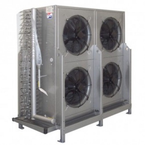 Блок охолоджувача виконаний з мідного трубного пучка коридорного типу, ламелі з алюмінію. Корпус - сталевий оцинкований лист без забарвлення, ніжки з оцинкованої сталі без забарвлення. Піддон з алюмінію, відкидний і легко очищається.